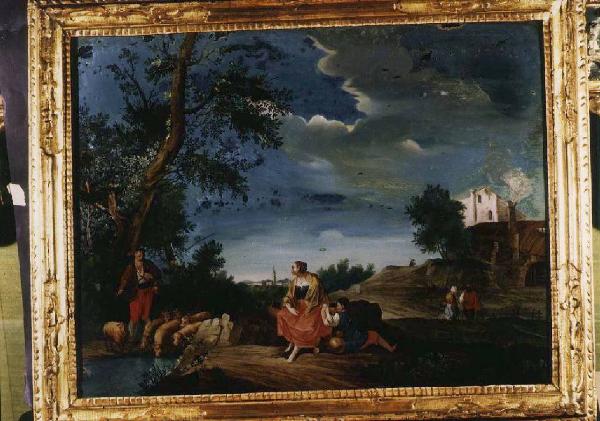 paesaggio con pastore e figure