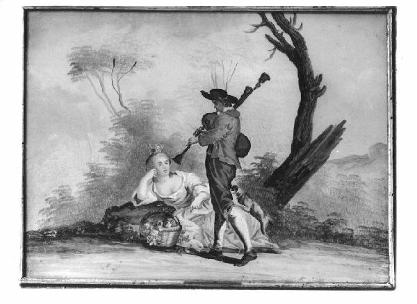 • NOTIZIE STORICO CRITICHE Soethby's: alla maniera di Watteau, probabilmente tedesco, circa 1765. In Sotheby's 1980 figura nell'armadio della Camera da letto Materna.