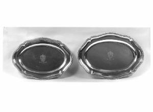 Corpo ovale con bordo sagomato e cordonato. Stemma centrale