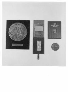 La targa è inserita in una cornice di velluto verde incollata ad un'astuccio di cartone ricoperto di stoffa (?) verde che si chiude con un bottone metallico.