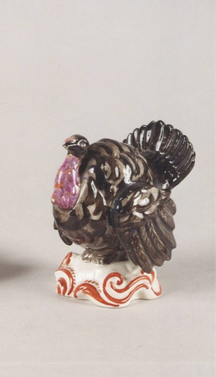 Piccola scultura raffigurante un tacchino. Il dorso ha dei piccoli fori.