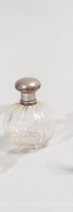 Un portaprofumo in cristallo, di forma tonda, con montatura in argento.