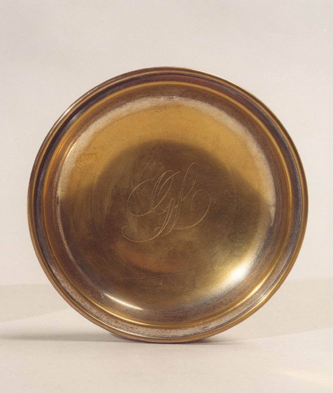 - NOTIZIE STORICO CRITICHE Piccolo piattino in argento, di semplicissima fattura, con al centro un monogramma formato dalle lettere GL.