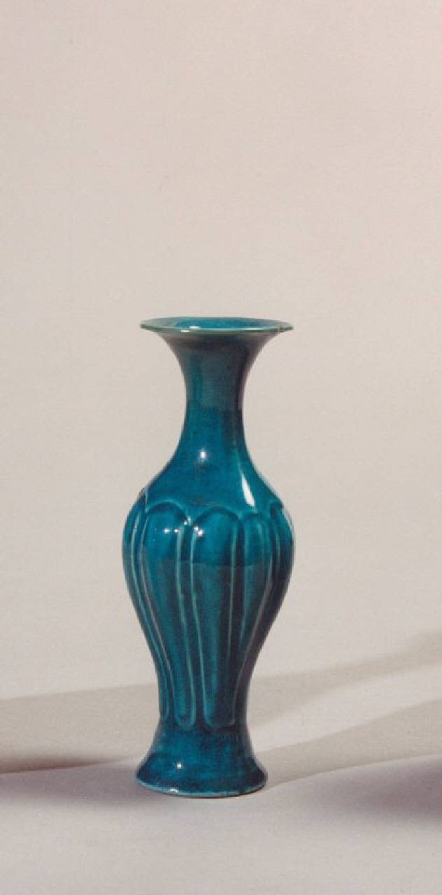 - NOTIZIE STORICO CRITICHE Piccolo vaso in porcellana blu di manifattura cinese. Dalla dimensioni ridotte è probabile che si tratti di una "snuff bottle", cioè una piccola bottiglietta per aspirare il tabacco in polvere, tipologia diffusa a partire dal XVIII secolo solamente presso la corte imperiale, che risultava quindi il maggiore committente dei pezzi. Prodotte in diversi materiali, tra cui la porcellana smaltata con decori a rilievo modellati nel corpo.\nIl manufatto in precedenza si trovava nel piano seminterrato di Villa Necchi.