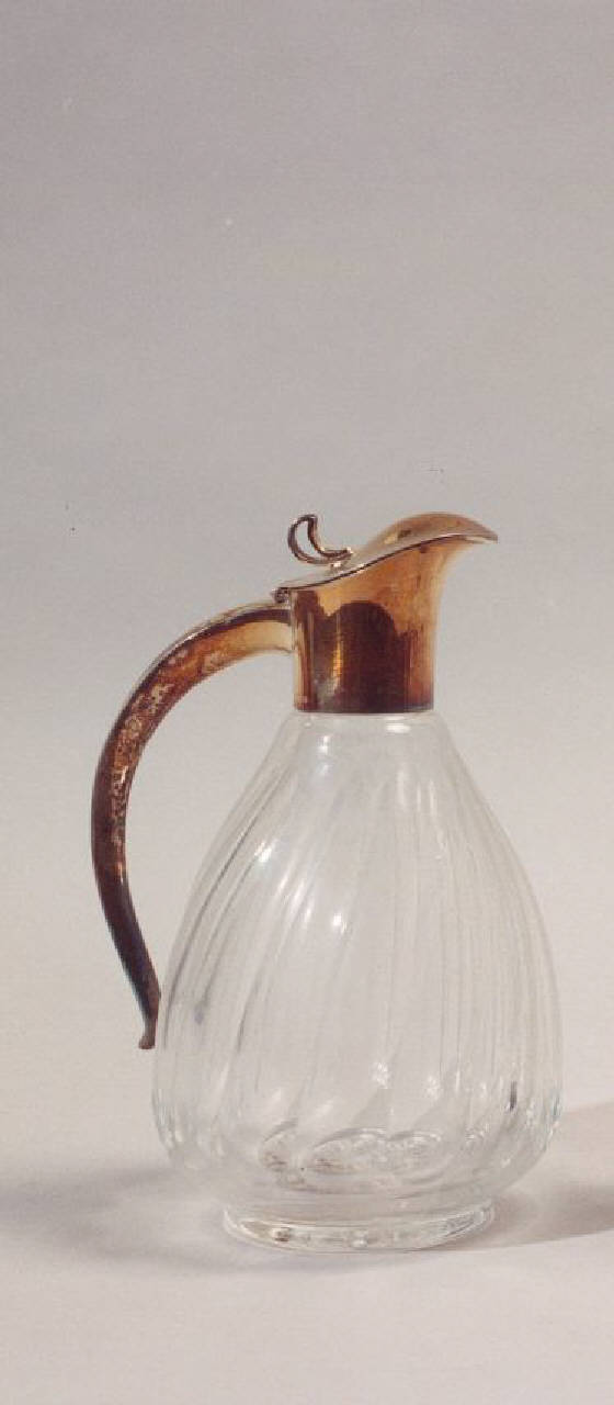 Caraffa in cristallo con chiusura e manico in argento.