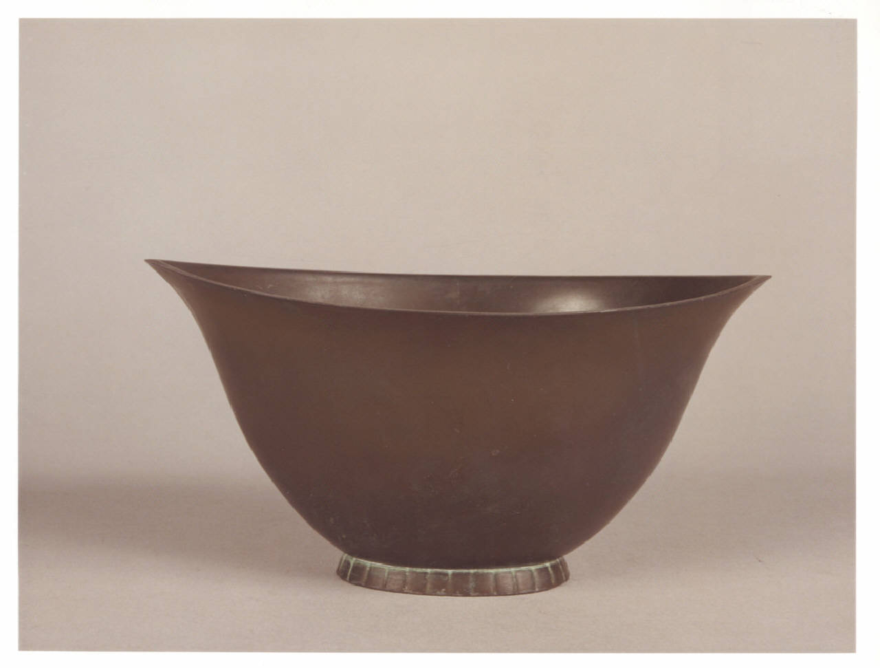 Coppa in bronzo con larga imboccatura; base con decoro quadrettato.