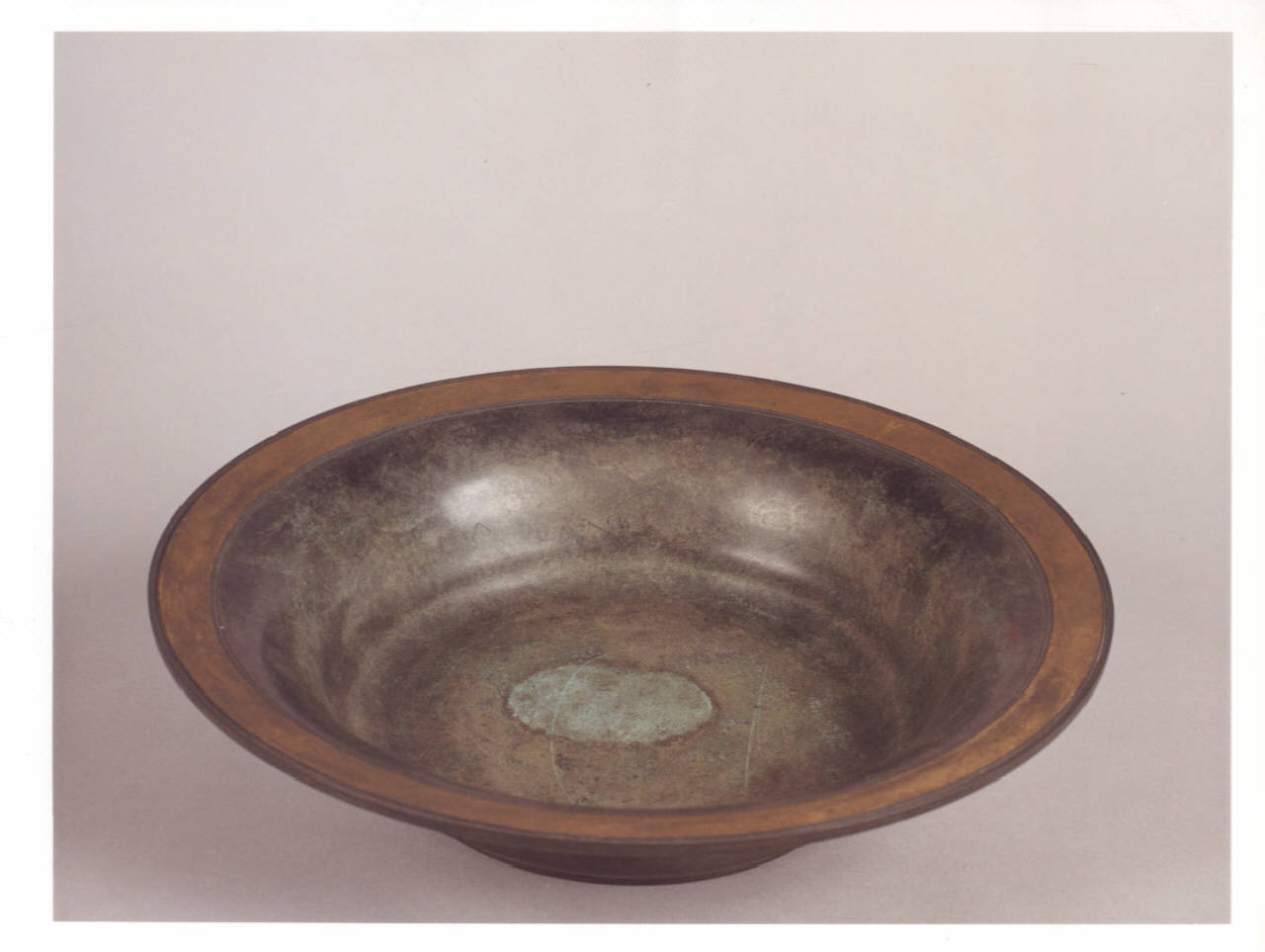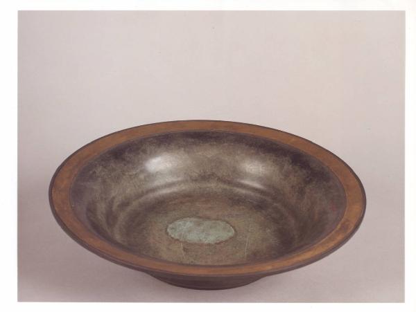Catino in bronzo con bordi dorati.