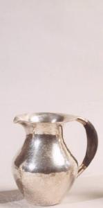 Brocca per l'acqua in argento liscio, manico in legno.