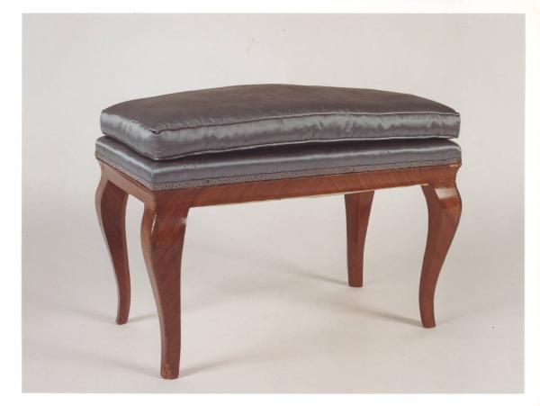 Poggiapiedi con gambe mosse; rivestimento in velluto come il cuscino.