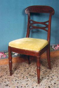 sedia velluto verde (inv. n. 043, 044, 045, 046, 047, 048, 049, 050, 051, 052) ; sedia stoffa azzurra (inv. 111, 110) ; sedia stoffa riga gialla (inv. 102, 103, 104) ; sedia stoffa a fiori (inv. 99)