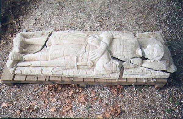 Lastra coperchio di sarcofago con cavaliere in armi deposto