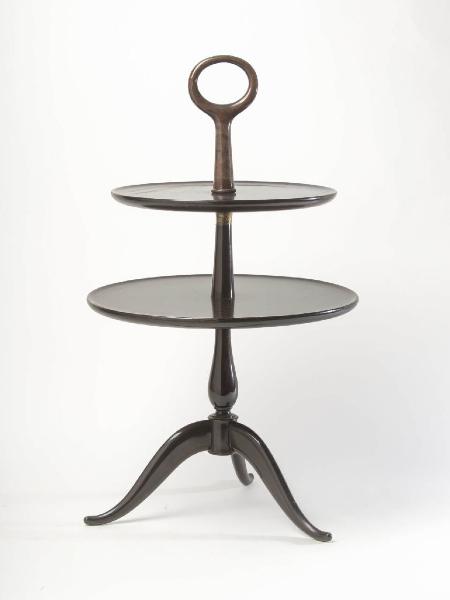 Semplice tavolino a due ripiani circolari di dimensioni differenti.