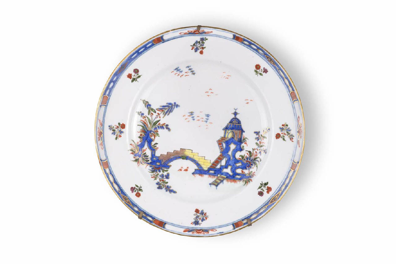 L'insieme, costituito da 12 piatti in porcellana con decorazioni "al ponticello o del Giapon", prevalentemente di colore blu, proviene dalla manifattura veneziana di Geminiano Cozzi (1728-1798) ed è databile all'ultimo qu\narto del XVIII secolo.