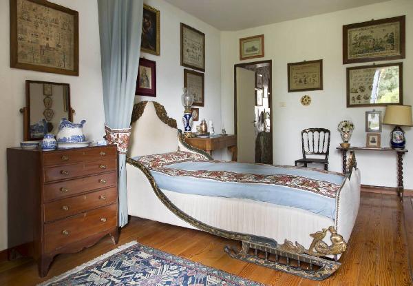 Il letto è ricavato da un'antica slitta russa, in legno intagliato e dora\nto; proviene da Villa Fogazzaro Colbachini a Montegalda, nel Vicentino.