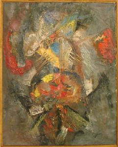 composizione astratta di influenza espressionista. Sul retro della tela è riportata la data di esecuzione, 1955