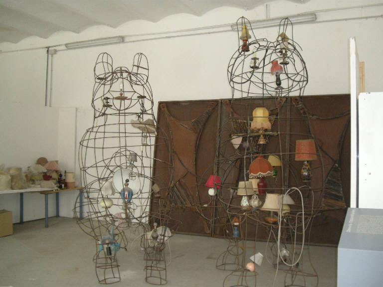Scultura costituita da un profilo metallico modellato a costruire la struttura di un cane gigante tridimensionale, all'interno del quale sono posizionate in corrispondenza degli organi interni dell'animale, lampade di varie fogge e dimensioni.