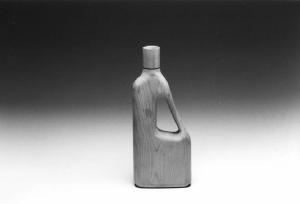 Modello di studio per contenitore da bagno per liquidi. E' composto da un solido a pianta ellittica, dotato di tappo cilindrico nel quale, in elevazione, è stata ricavata una maniglia praticando una ampia asola.
