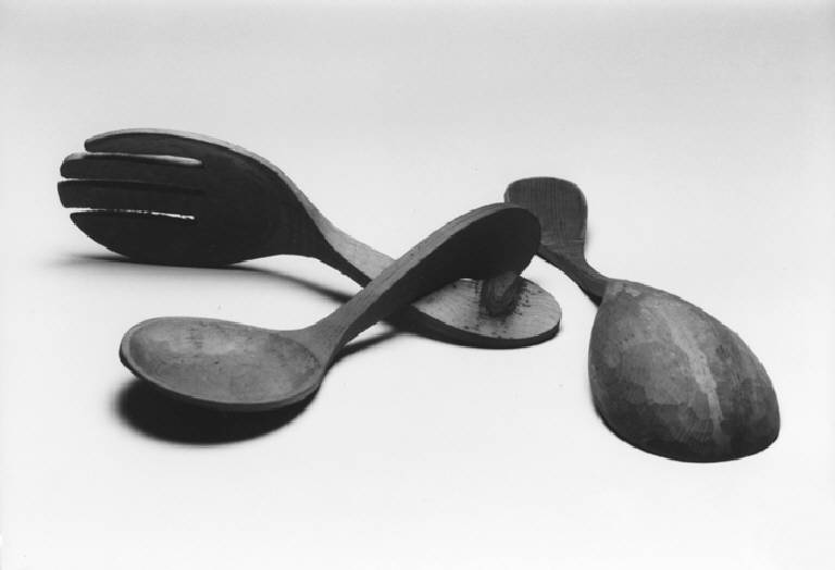 Modello di studio per set di posate da insalata composto da due cucchiai e una forchetta. I due cucchiai presentano un diverso posizionamento del manico rispetto alla paletta concava ovale: in uno il manico è parallelo a quello della paletta concava; nell'altro (quello andato in produzione) è perpendicolare. La forchetta nasce dal cucchiaio semplicemente realizzando tre tagli paralleli nella paletta concava ottenendo quattro rebbi. La rotazione del manico, rispetto ad una tradizionale posata, facilita l'azione del mescolare.