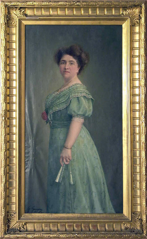 - NOTIZIE STORICO CRITICHE Realizzato secondo i moduli del ritratto di rappresentanza, il dipinto che raffigura in piedi a figura quasi intera la clarense Rosa Cicolari, sposa di Luigi Apap (inv. n. D00062) non presenta particolari qualità artistiche. Accademico nella conduzione e privo di riferimenti culturali che lo possano avvicinare ai risultati contemporanei della ritrattistica dei primi decenni del Novecento, il lavoro di questo artista del quale si conosce, grazie alla firma, solo il cognome, mostra caratteri abbastanza semplificati sia nell'impostazione generale che nella resa - assai superficiale - della psicologia del personaggio.