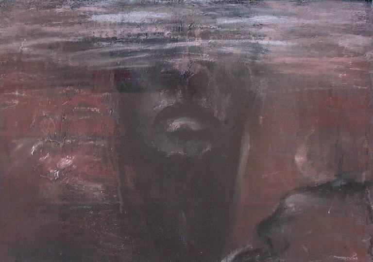 - NOTIZIE STORICO CRITICHE Al tema della soltudine Beppe Corna dedica una serie di dipinti tra il 1996 e il 1997. La tematica è svolta utilizzando l'immagine del volto umano avvolto tra fili di nebbia. In quest'opera, come nell'altra conservata presso la Pinacoteca Repossi (D00088), si nota lo stesso trattamento della materia pittorica che fa da sfondo e avvolge l'enigmatico viso solo in parte riconoscibile attraverso pochi ampi segni scuri.