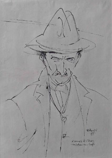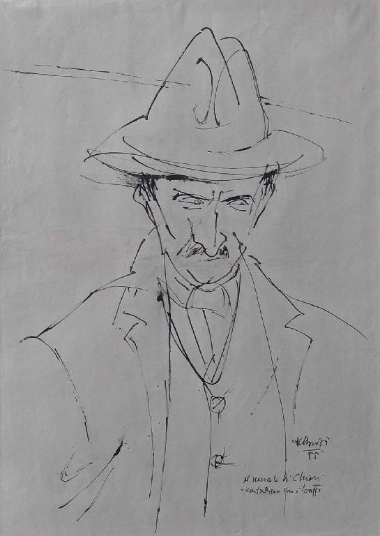 - NOTIZIE STORICO CRITICHE Concentrato sulla fisionomia aguzza e sghemba del protagonista, questo ritratto, al limite della caricatura, mostra tutti i tratti della poetica di Dessanti, dalla semplificazione dei tratti costruttivi, all'approfondimento psicologico, all'amore per l'osservazione reale del quotidiano. Qui sono messe bene in evidenza le doti di vigoroso disegnatore che permettono all'artista di delineare con grande efficacia e spigliatezza il mondo interiore del ritrattato.