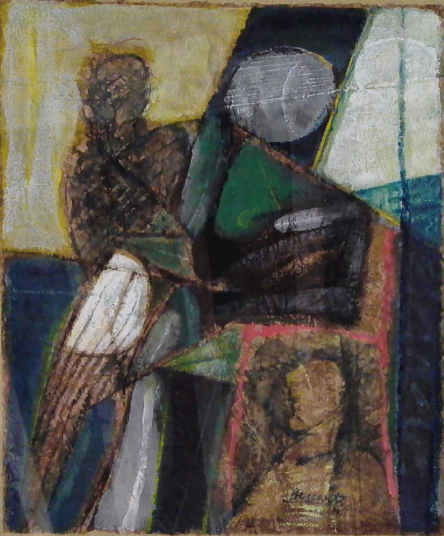 - NOTIZIE STORICO CRITICHE La riduzione a forme astratte, come spesso accade nelle opere di questo periodo, cela qui più che altrove ogni avvicinamento a figurazioni rintracciabili nella realtà. L'unico indizio, segnalato anche dal titolo, è una mezza luna bianca che si intuisce nella parte alta del dipinto. Si notino i toni carichi della cromia e i valori materici esaltati anche dalla scelta del supporto.