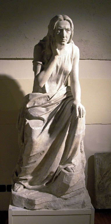 - NOTIZIE STORICO CRITICHE Destinata a un monumento funebre, come molta della produzione ricciana, questa figura solenne e dallo sguardo inquieto riesce ad affrancarsi un po' dal solito accademismo delle sculture da sepoltura realizzate dall'artista. Qui pare di ravvisare una tensione recitativa più sincera e una sospensione sentimentale desunta dal mondo del verismo idealizzante, sempre controllata e raffrenata entro i canoni della migliore statuaria classicista.
