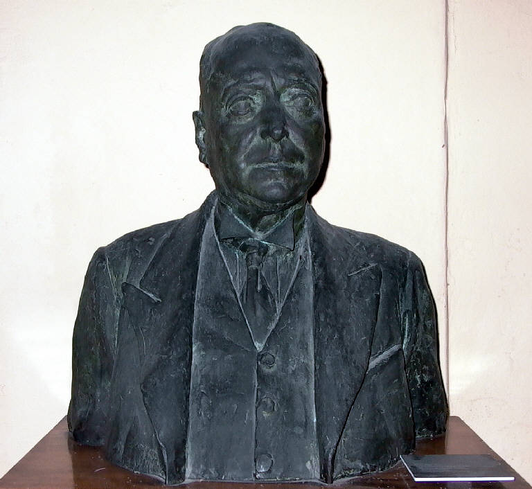 - NOTIZIE STORICO CRITICHE Il busto dell'avvocato Caravaggi è concepito da Repossi con una solida volumetria e con una forza plastica di grande impatto. Il modellato mosso e franto conferisce alla scultura una vibrazione luministica tutta particolare che conferisce soprattutto al volto, trattato con fare compendiario e velocità di esecuzione, un senso di forte tensione psicologica.