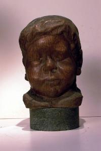 - NOTIZIE STORICO CRITICHE In base al piccolo ritratto del figlio (inv. n. D00239) è possibile ritenere che questa scultura ritragga il figlio dell'artista a pochi mesi dalla nascita. Le forme chiuse e tondeggianti, tipiche delle opere dello scultore durante gli anni Quaranta, permettono di esaltare i lineamenti propriamente infantili del piccolo e metterne in risalto la dimensione in fieri della fisionomia. Pelati tratta questo ritratto come un blocco poco scavato sul quale la luce si muove calma e uniforme, priva degli sbattimenti e dei contrasti delle opere realizzate in seguito. L'opera è stata donata alla Fondazione dalla sig.ra Iris Polidori vedova dell'artista Vittorio Pelati come volontà testamentaria; deceduta la sig.ra Iris nel 1999, tale opera è giunta in Fondazione nel 2002.