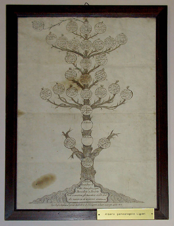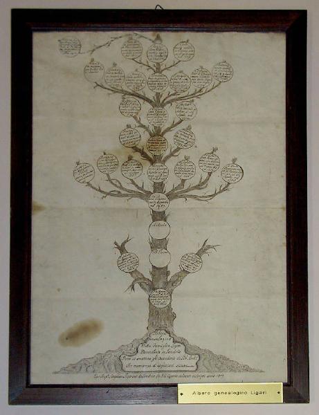 - NOTIZIE STORICO CRITICHE L'autore che si dichiara figlio di Cesare, non è l'omonimo pittore ottocentesco, ma il di lui zio paterno sacerdote. Ovviamente, l'albero genealogico fu continuato da altre mani. Altri alberi si trovano presso i discendenti della famiglia. A p. 17 del libro "I Ligari" di L. Meli Bassi ne è riprodotto uno (la cui attuale collocazione è sconosciuta) tracciato forse nel 1828 dal pittore Angelo, che annovera 9 e non 10 generazioni.