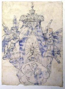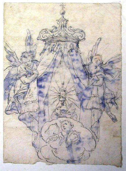 - NOTIZIE STORICO CRITICHE In Mastro N (c. 165v) Cesare annota: "Adì 30 novembre [1756] è consegnato [al curato di Chiesa in Valmalenco] il disegno fatto per ornamento del baldacchinetto da farsi a intaglio, con alcune testine di cherubini, tutto acquerellato e disegnato in netto ed in misura, per il quale mi mi sono accontentato di chiedere solo taleri 3". Non è però certo che il presente disegno si riferisca al lavoro suddetto.