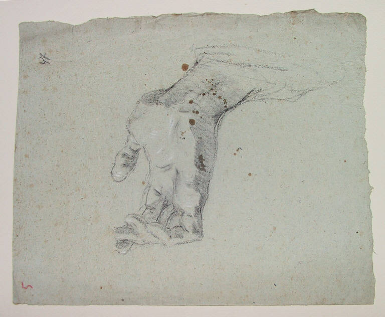 - NOTIZIE STORICO CRITICHE Il disegno è certamente uno studio preparatorio per un dipinto. Mani simili si trovano nella pala di Polaggia (1749), nella "Gloria di S. Lorenzo" (1750) e nella pala del Collegio Gallio di Como (1753).