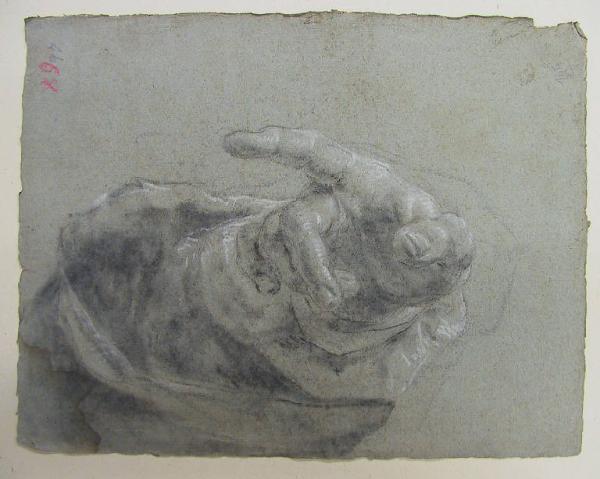 carboncino e sfumino con tracce di gessetto su carta cenerina