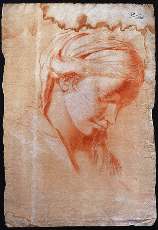 sanguigna, gessetto e sfumino su carta preparata ocra-rosata