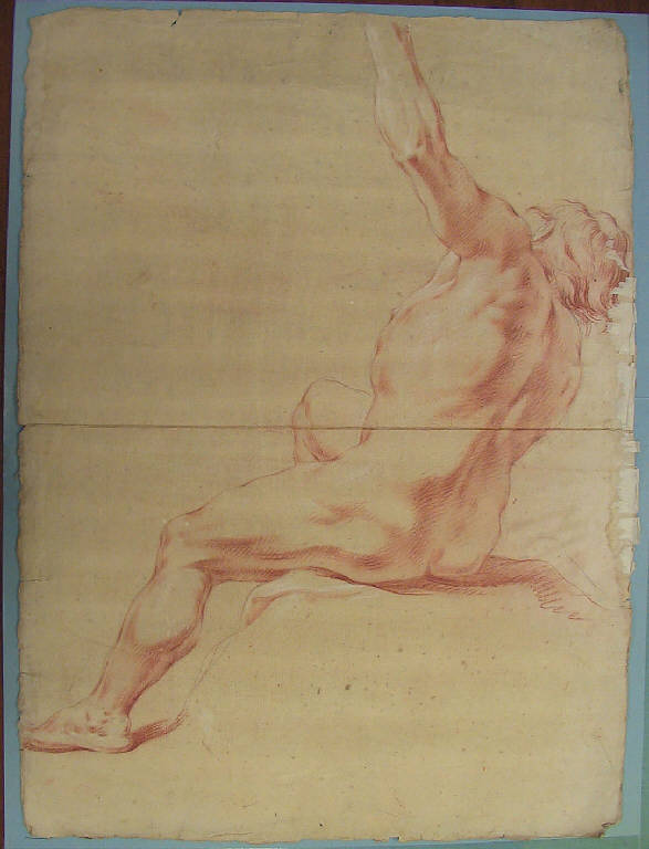 sanguigna, gessetto e sfumino su traccia a matita, carta giallognola