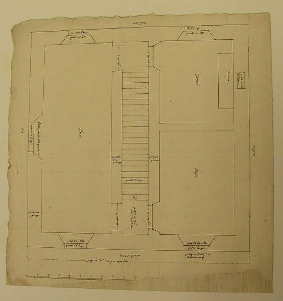 - NOTIZIE STORICO CRITICHE Vedere N.I.L. 388. Diversamente dagli altri disegni, questo propone un edificio con grande ambiente porticato di accesso.