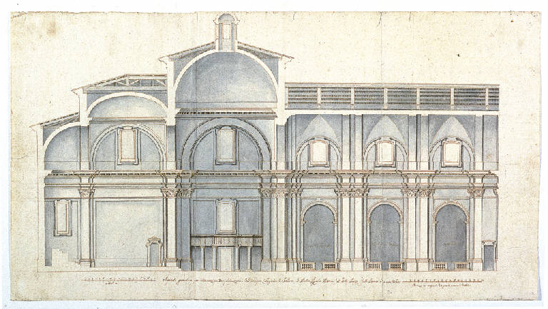 Sezione longitudinale della della collegiata di Sondrio. Sezione della chiesa dei Santi Gervasio e Protasio a Sondrio