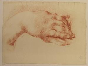 sanguigna rosso-bruno con tracce a matita su carta bianca