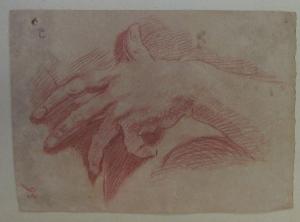 sanguigna su carta beige rosata, tocchi di gessetto (recto)