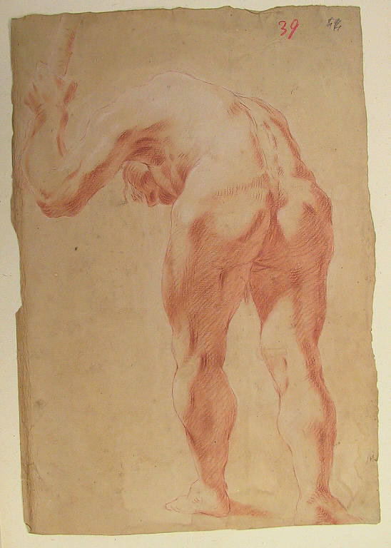 sanguigna, gessetto e sfumino su carta preparata ocra-rosata