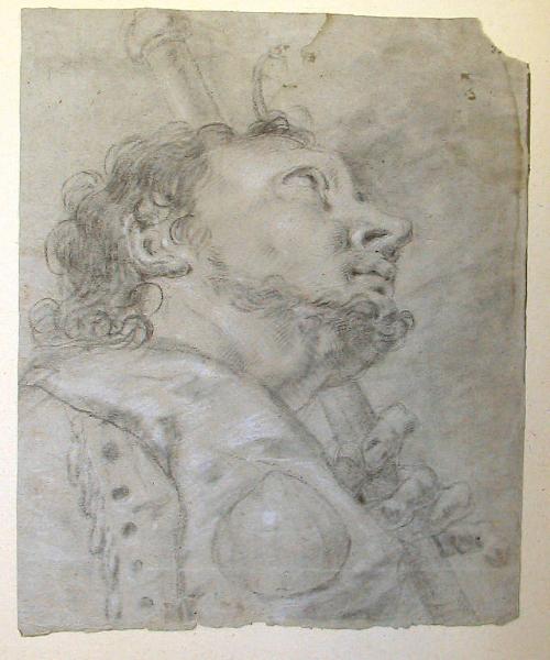 - NOTIZIE STORICO CRITICHE L'attribuzione del Gianoli a Pietro Ligari ripete l'indicazione dell'Inventario della donazione al Comune di Sondrio, che lo menziona come Santo, ma è sicuramente da correggere poichè i lineamenti, i capelli e soprattutto la mano agile e nervosa, dalle dita variamente piegate, reclamano l'attribuzione a Cesare.\nNel verso si notano tracce di incollatura.