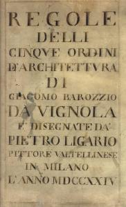 Frontespizio del trattato di architettura di Giacomo Barozzi da Vignola