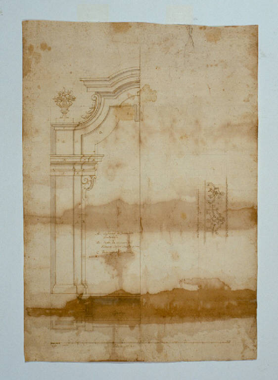 - NOTIZIE STORICO CRITICHE Il disegno, depositato presso il Museo civico, è stato recentemente rinvenuto presso la Società storica valtellinese. Il presente disegno è da mettersi in relazione con la nota del Mastro N che in data 13 aprile 1741 registra la consegna a Domenico GiuseppeLavizzari di "un dissegno in pianta ed alzata per le 4 prospettive nelli due cantoni in fondo al giardino (...) e sopra la stessa carta ho dissegnato una Mantovana per tapeti di tavolini" per il Palazzo di Quadrobio. (vedi N.I.L. 26 e 406)