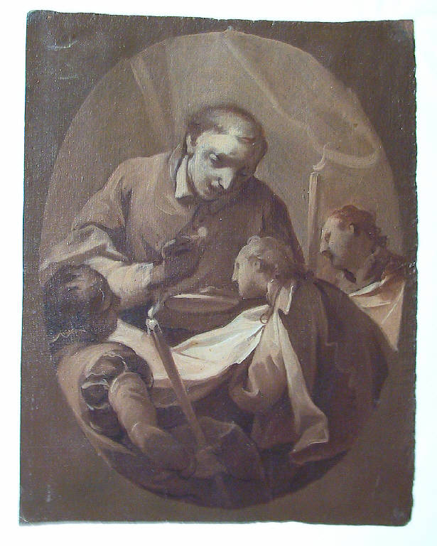 - NOTIZIE STORICO CRITICHE La scena è rappresentata con una certa vivacità, non come una posa studiata ma come un'istantanea: S.Carlo socchiude le labbra promunciando le parole rituali, i due piccoli assistenti fanno oscillare i ceri sgocciolanti. Ne risulta però una composizione piuttosto incerta.