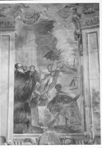 - NOTIZIE STORICO CRITICHE L'affresco fu eseguito insieme con la scena sulla parete opposta e sul catino absidale da un pittore lombardo nel 1710, data dipinta sull'arcata della campata antistante la cappella.