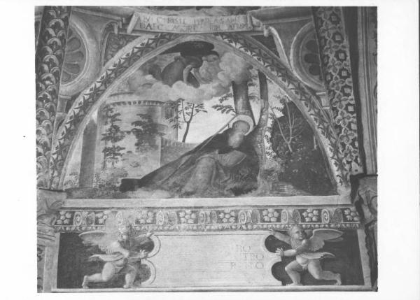 - NOTIZIE STORICO CRITICHE La decorazione della cappella era citata dal Maiocchi. La Fanciulli Pezzini ritrovava nelle lunette la stessa mano dei riquadri delle pareti assegnati al Lanzani e ai suoi aiuti.