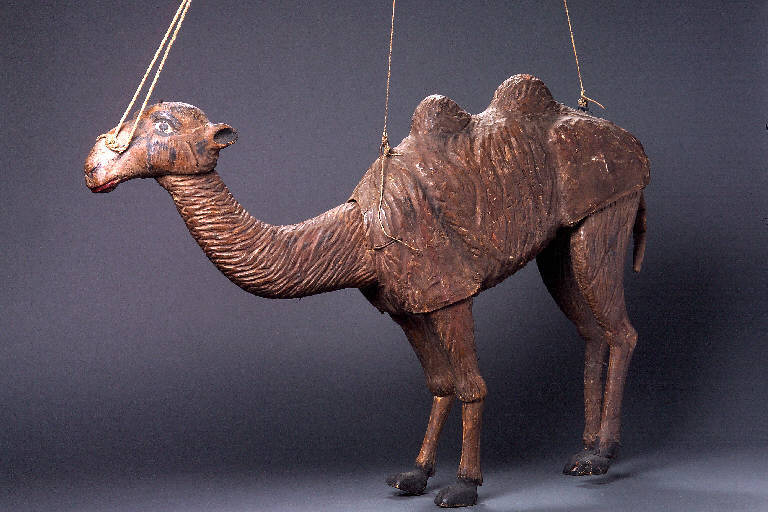 Testa di legno snodata, di colore marrone; occhi dipinti di nero. Briglie di spago. Pelo intagliato. Il corpo è interamente di legno con le zampe articolate. Lo snodo è mascherato da tela dipinta marrone. Le zampe anteriori hanno lo snodo alle ginocchia, le posteriori sono rigide. Gli zoccoli sono dipinti di nero. La coda è di stoffa dipinta marrone.