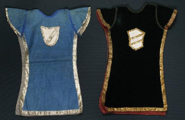 Le stole venivano poste sulle spalle delle marionette. La prima è di tessuto azzurro con fodera grigia ed è bordata con nastro laminato argento esternamente, e con traversino blu sulla scollatura e sull'attaccatura delle maniche. Sul petto è applicato uno stemma a forma di scudo di cotone bianco bordato con nastro laminato argento e con una fascia dello stesso tessuto posta trasversalmente. La seconda stola è di velluto nero con fodera color ruggine ed è bordata con nastro laminato oro esternamente, e con treaversino nero sulla scollatura e sull'attaccatura delle maniche. Sul petto è applicato uno stemma poligonale di seta bianca bordato con nastro laminato oro e con due fasce dello stesso tessuto poste trasversalmente. Le due stole sono entrambe aperte lungo i lati.