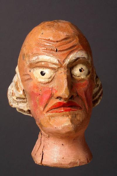 - NOTIZIE STORICO CRITICHE Teste prodotte artigianalmente in serie dalla prima metà dell'800 fino alla seconda guerra mondiale. Le varie famiglie di scultori si specializzavano nei soggetti che affluivano ad un committente che le acquistava.\nQuesti le cedeva a venditori ambulanti che riempivano le gerle di queste teste e di altri manufatti in legno prodotti nella zona (giocattoli,stoviglie,ciotole). Si ritrovano teste in collezioni di varie parti d'Europa dall'Inghilterra alla Grecia, dalla Francia ai Paesi dell'est Europa. In Italia sono presenti nelle seguenti collezioni pubbliche:Museo Teatrale alla Scala, Scuola Paolo Grassi, Museo Faraggiana di Novara, il Castello dei Burattini di Parma, Collezione Forlai del Comune di Forlì,e in numerose collezioni private, tra queste la più importante è la Collezione Mercuriali di Cesenatico. Queste teste, per la maggioranza di piccole dimensioni servivano poi per essere "vestite" e diventare burattini oppure con l'aggiunta successiva di un corpo (non prodotto in Val Gardena), diventare marionette. Le teste prodotte in dimensioni maggiori erano utilizzate da burattinai e marionettisti professionisti. Le teste dopo essere state pennellate di bianco, venivano dipinte a tempera e assumevano l'aspetto semilucido con l'aggiunta, successiva, di chiaro d'uovo. I soggetti relativi alle teste erano anche differenziati per aree culturali (Fagiolino,Sandrone,Gioppino: per l'Italia settentrionale; Guignol e Gnafron\nper la francia; Punk e Judy per l'Inghilterra, Kasperl per la Germania e i Paesi dell'Est Europeo), mentre le maschere della Commedia Dell'Arte ( Arlecchino, Brighella, Dottore, Capitano, Pantalone, ecc.), erano distribuite in tutta Europa.