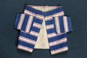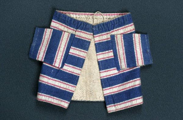 La giacca da galeotto è di flanella blu con righe orizzontali bianche e rosse più sottili, la fodera è beige. Nel bordo superiore è inserito un cordoncino per il fissaggio al collo del burattino con sistema a coulisse.